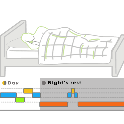 By analyzing body orientation and nighttime movement, we provide objective measures of sleep quality and restlessness. These metrics complement daily mobility outcomes with valuable insights into recovery.